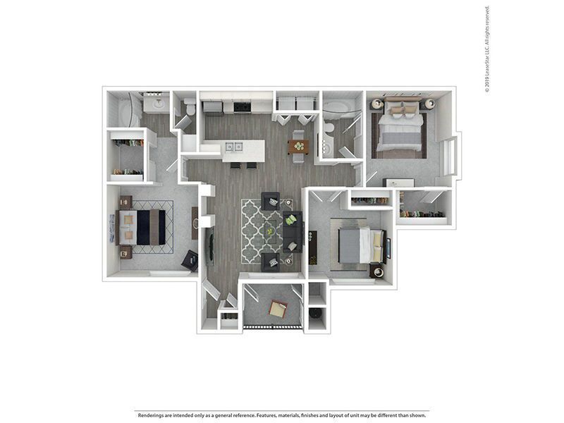 Apartment Model: Three bedroom, two bathCall For Rates3 Bedroom, 2 Bath, 1199 sq ftUnavailableFloor plans are artist's rendering. All dimensions are approximate. Actual product and specifications may vary in dimension or detail. Not all features are available in every rental home. Prices and availability are subject to change. Base rent is based on monthly frequency. Additional fees may apply, such as but not limited to package delivery, trash, water, amenities, etc. Deposits vary. Please see a representative for details.