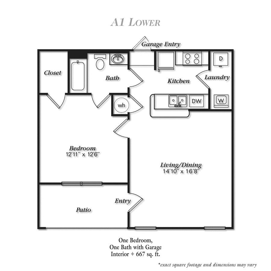 Apartment Model: A1LGFrom $1,3981 Bedroom, 1 Bath, 667 sq ftAvailable NowFloorplansPhotos![]()
