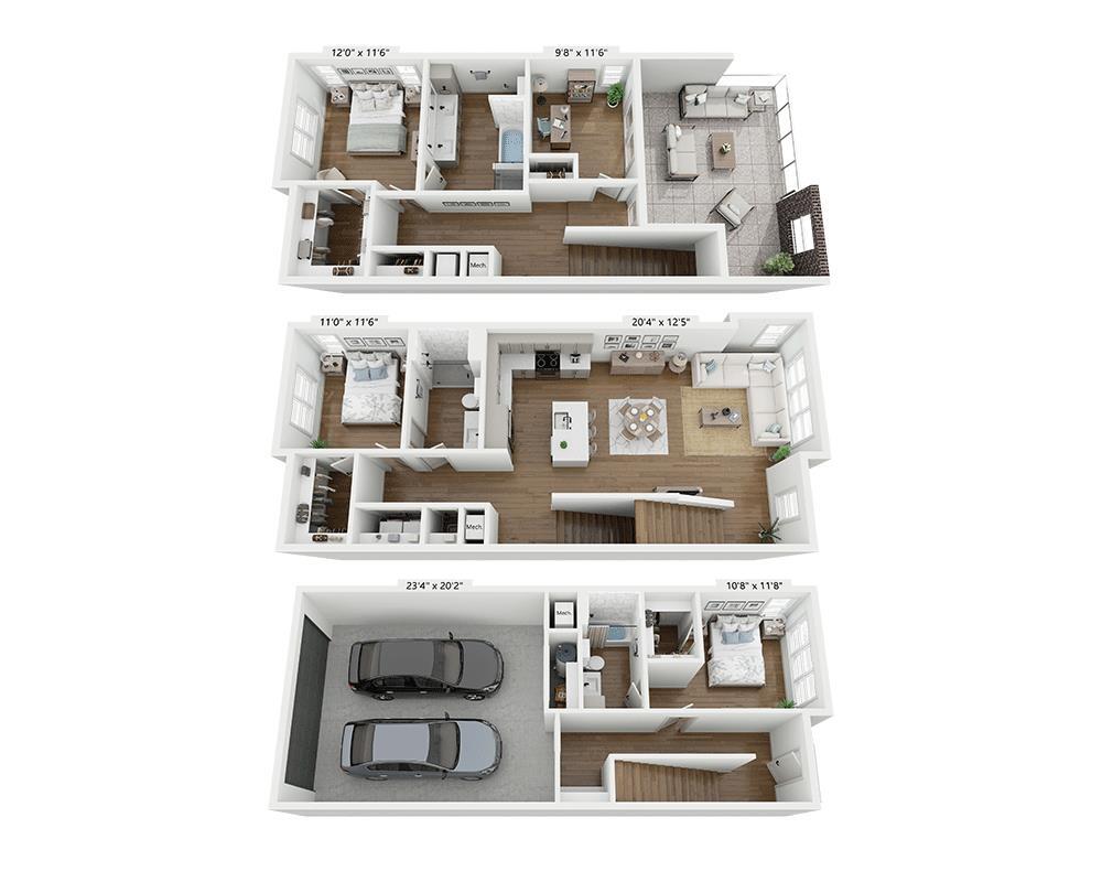 2 Beds, 2.5 Baths, 1686 sq ftModel Gallery