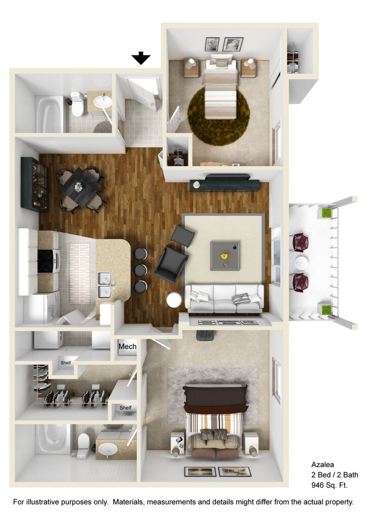 Apartment Model: MagnoliaFrom $1,9512 Bedroom, 2 Bath, 1055 sq ftAvailable NowFloor plans are artist's rendering. All dimensions are approximate. Actual product and specifications may vary in dimension or detail. Not all features are available in every rental home. Prices and availability are subject to change. Base rent is based on monthly frequency. Additional fees may apply, such as but not limited to package delivery, trash, water, amenities, etc. Deposits vary. Please see a representative for details.