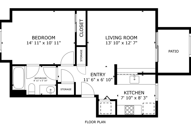 One Bedroom Standard (1) - Floorplan 1 ![]()