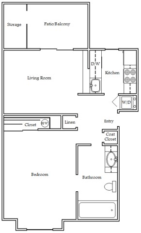 One Bedroom - Floorplan 9 Apartment Unit: C-56Apartment Model: One Bedroom1 Bedroom, 1 Bath, 605 sq ftAvailable Now![]()