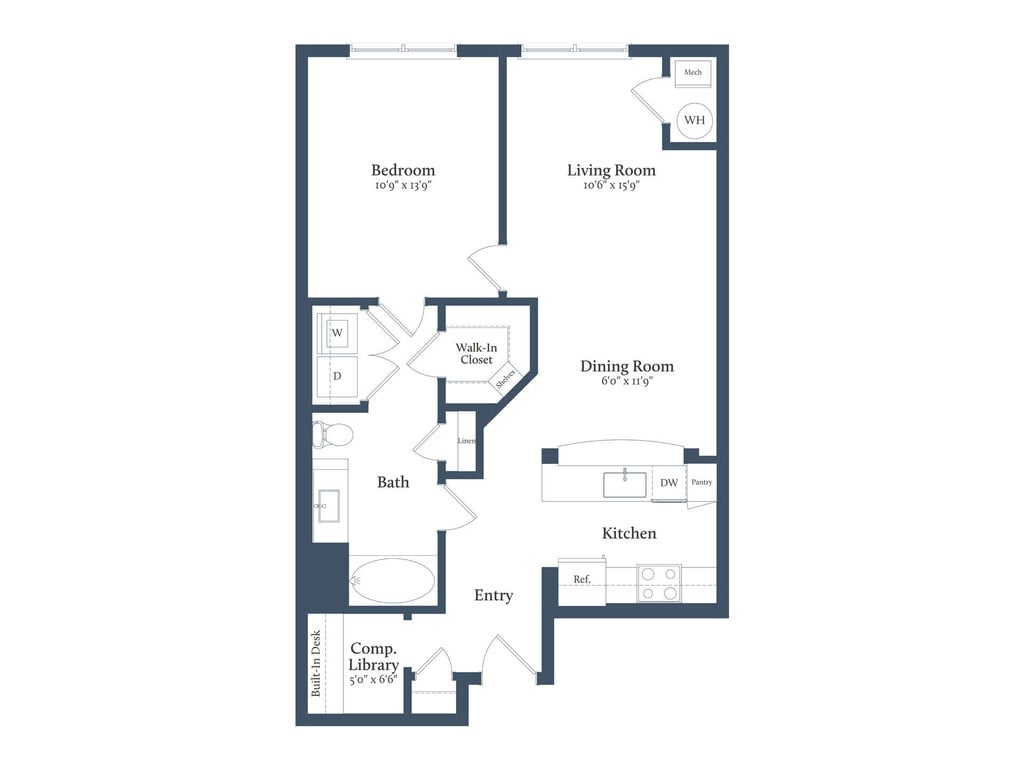 Apartment Model: 1x1DFrom $2,5501 Bedroom, 1 Bath, 842 sq ftAvailable November 8, 2025Floor plans are artist's rendering. All dimensions are approximate. Actual product and specifications may vary in dimension or detail. Not all features are available in every rental home. Prices and availability are subject to change. Base rent is based on monthly frequency. Additional fees may apply, such as but not limited to package delivery, trash, water, amenities, etc. Deposits vary. Please see a representative for details.