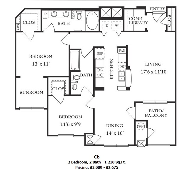 Apartment Model: 2x2CFrom $2,7892 Bedroom, 2 Bath, 1217 sq ftAvailable November 13, 2025Floor plans are artist's rendering. All dimensions are approximate. Actual product and specifications may vary in dimension or detail. Not all features are available in every rental home. Prices and availability are subject to change. Base rent is based on monthly frequency. Additional fees may apply, such as but not limited to package delivery, trash, water, amenities, etc. Deposits vary. Please see a representative for details.