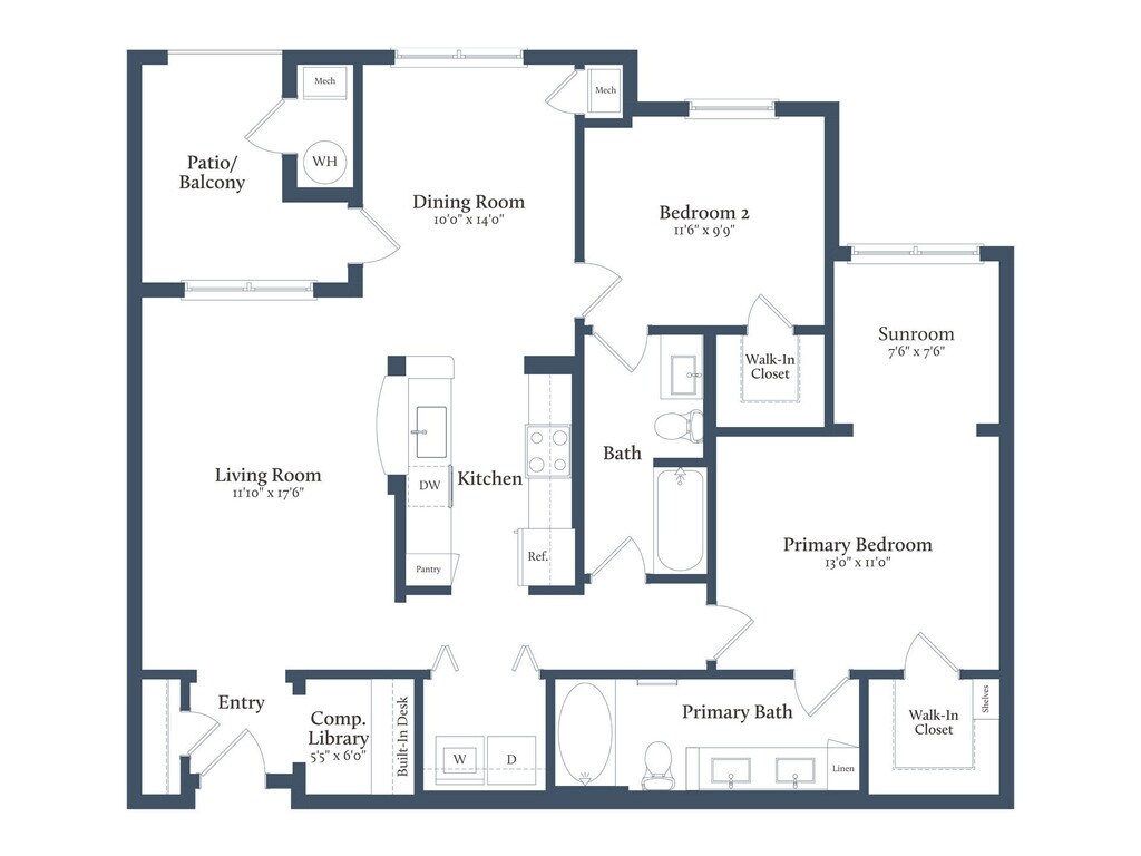 Apartment Model: 2x2DFrom $2,7472 Bedroom, 2 Bath, 1280 sq ftAvailable NowFloor plans are artist's rendering. All dimensions are approximate. Actual product and specifications may vary in dimension or detail. Not all features are available in every rental home. Prices and availability are subject to change. Base rent is based on monthly frequency. Additional fees may apply, such as but not limited to package delivery, trash, water, amenities, etc. Deposits vary. Please see a representative for details.