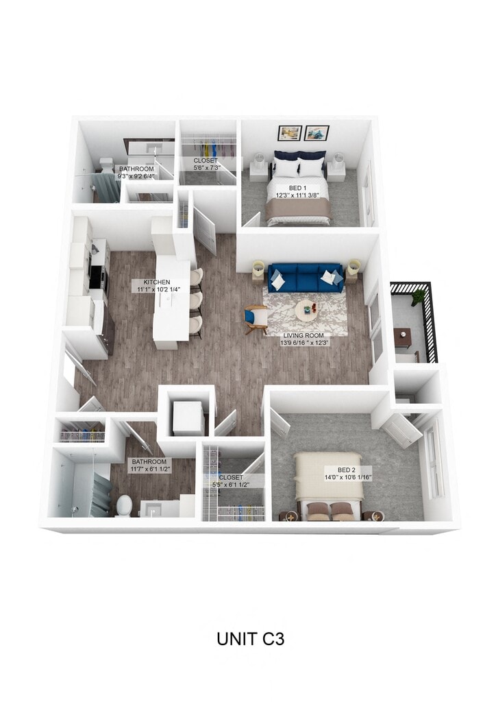 2 Beds, 2 Baths, 1176 sq ftPlus FeesAvailable NowLargest 2 BedroomThis is the largest 2 Bedroom at this PropertyModel Gallery