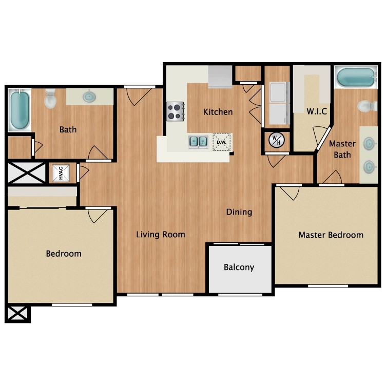 2 Bed 2 Bath - Floorplan 1 3 Bedrooms