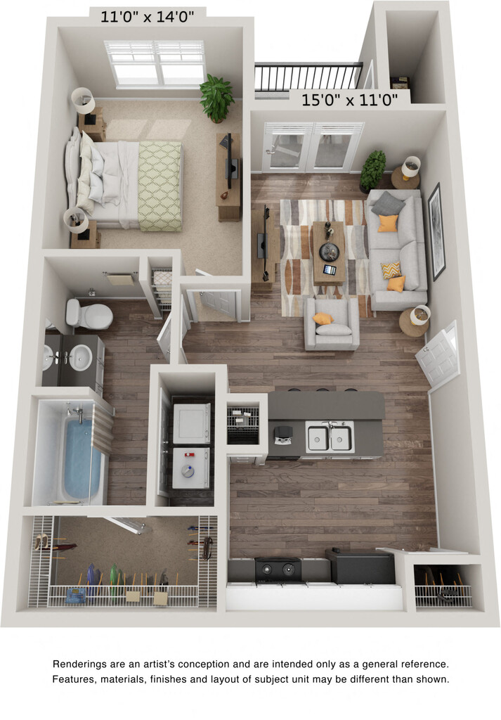 1 Bed, 1 Bath, 727 sq ftAvailable NowModel Gallery