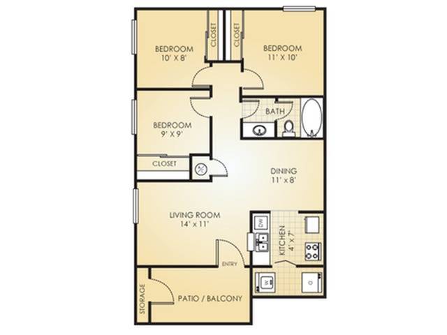 3 Beds, 1 Bath, 950 sq ftModel Gallery