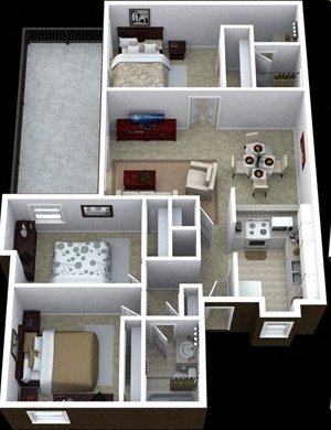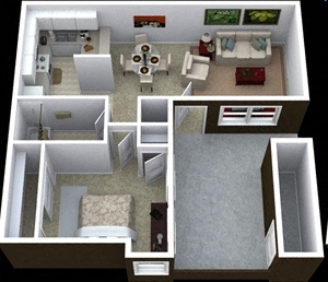 Apartment Model: Two Bedroom One BathroomFrom $1,2752 Bedroom, 1 Bath, 847 sq ftAvailable Now![]()