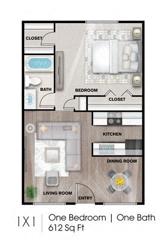 1 Bed, 1 Bath, 612 sq ftModel Gallery