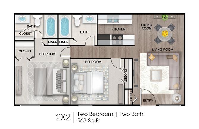 2 Beds, 2 Baths, 963 sq ftModel Gallery