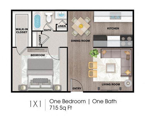 1 Bed, 1 Bath, 715 sq ftModel Gallery