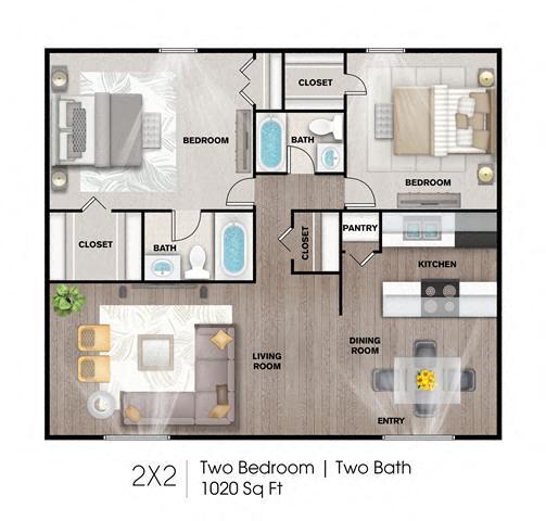 2 Beds, 2 Baths, 1020 sq ftModel Gallery