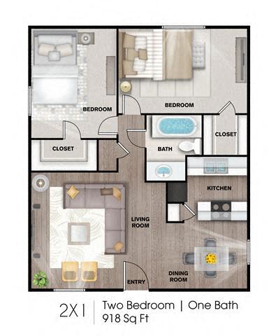 2 Beds, 1 Bath, 918 sq ftModel Gallery