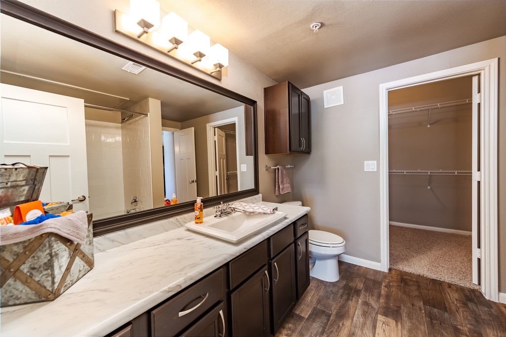 The community of Frisco is a vibrant and growing town, and the Villas of Chapel Creek represent the best in luxury apartments in town. Modern style infuses every apartment home, as well as throughout the property and around our community features. Our Frisco apartments offer a wealth of signature interior features, as well as many ways to relax and enjoy our community amenities. A stroll around our property will give you so many ideas for how you can relax and enjoy life here. Frisco offers some terrific opportunities for entertainment, sports, and general conveniences, and we've worked to include many of those community elements at the Villas of Chapel Creek. Our resort-style swimming pool isn't just a sparkling pool of clear water. It's also an area with tanning decks, fountains, and cozy conversation areas. Some of our units even have attached yards, and we have covered parking and garages available, too. Do you have a lot of extra things? Take advantage of our extra storage. Within your future apartment home, you'll find more amazing amenities from the towering 12-foot raised ceilings to the wood vinyl flooring in the entryway, kitchen, and bath. In our Frisco apartments for rent, you can relax in your garden-style oval soaking tub, and enjoy the feeling of plush carpeting under your feet and the illumination of trendy track lighting. Beautiful brushed aluminum hardware greets you in the kitchen and bath alongside trendy kitchen and bath subway tile backsplashes. From the wood framed bathroom mirrors to the shaker panel beveled cabinets with brushed nickel hardware, our apartments are stylish, modern, and welcoming. We can offer side-by-side refrigerators, as well as black or stainless steel appliances that create gorgeous kitchens where you'll love spending time with family. Our apartments for rent in Frisco are one-of-a-kind, and we'd love to welcome you on a tour of your future home.