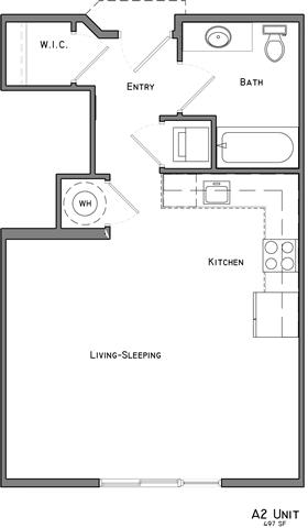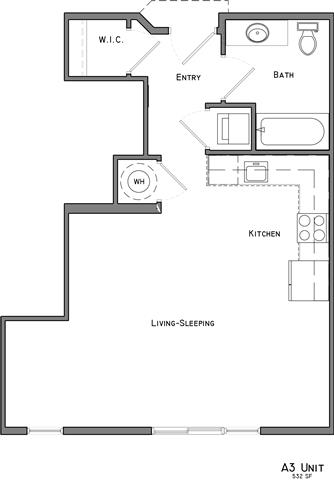 Studio, 1 Bath, 576 sq ftAvailable NowLargest StudioThis is the largest Studio at this PropertyModel Gallery