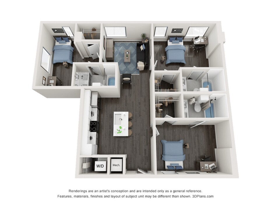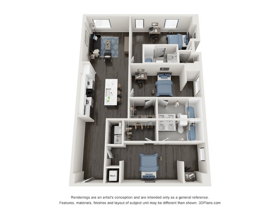 Apartment Model: C3$1,6493 Bedroom, 3 Bath, 1470 sq ftAvailable August 21, 2026![]() - C3 - Floorplan 1 Apartment Unit: PrivateApartment Model: C3$1,6493 Bedroom, 3 Bath, 1470 sq ftAvailable August 21, 2026- C1TH- $1,8593 Beds, 3 Baths, 2250 sq ftAvailable August 21, 2026Largest 3 BedroomThis is the largest 3 Bedroom at this Property- Model Gallery- Floorplans- Availability Details- Price - Availability Date - Unit - Sq Ft - $1,859 - August 21, 2026 - Private - 2250 - Unit Private Amenities and Features- Unique Features- 65” TVs in Each Living Room