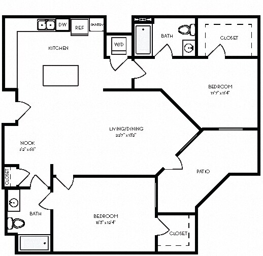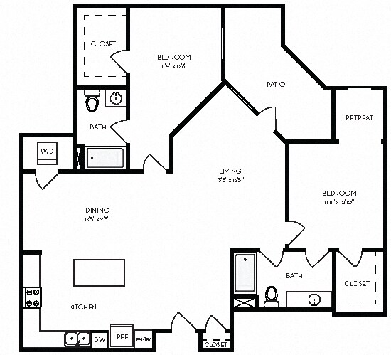 2 Beds, 2 Baths, 1365-1378 sq ftAvailable NowLargest 2 BedroomThis is the largest 2 Bedroom at this PropertyModel Gallery