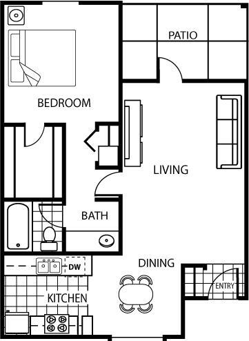 Apartment Model: One Bedroom One BathFrom $1,1041 Bedroom, 1 Bath, 720 sq ftAvailable NowFloor plans are artist's rendering. All dimensions are approximate. Actual product and specifications may vary in dimension or detail. Not all features are available in every rental home. Prices and availability are subject to change. Base rent is based on monthly frequency. Additional fees may apply, such as but not limited to package delivery, trash, water, amenities, etc. Deposits vary. Please see a representative for details.