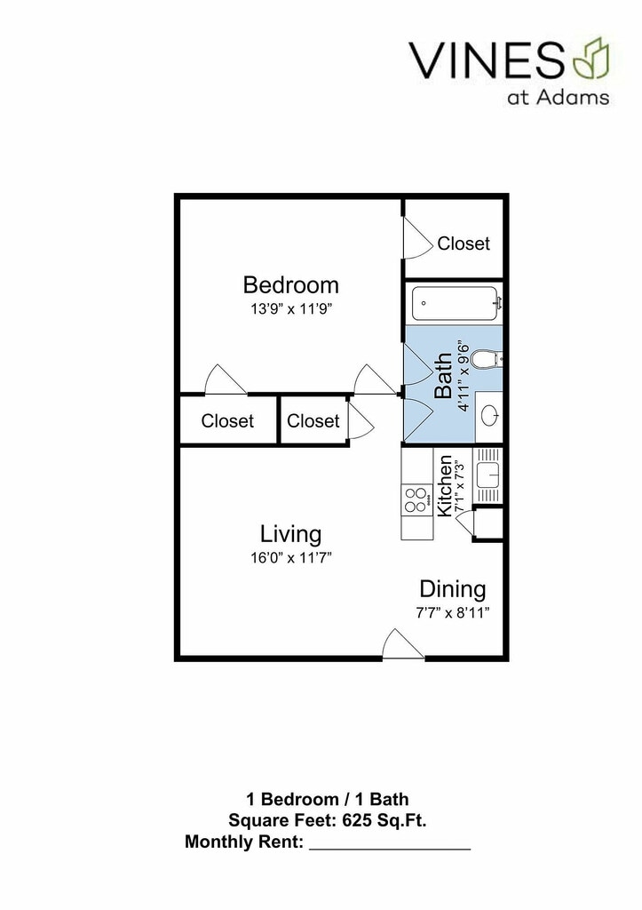 Apartment Model: 1 Bed 1 Bath1 Bedroom, 1 Bath, 625 sq ftAvailable Now![]()