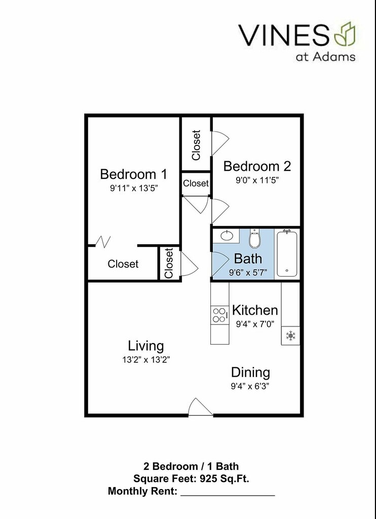 Apartment Model: 2 Bed 1 Bath2 Bedroom, 1 Bath, 925 sq ftAvailable NowFloorplansPhotos![]()