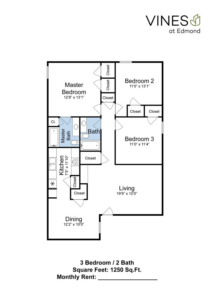 Apartment Model: 3 Bed 2 Bath3 Bedroom, 2 Bath, 1250 sq ftUnavailable![]()
