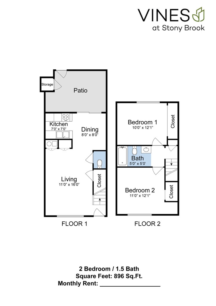 2 Beds, 1.5 Baths, 896 sq ftModel Gallery