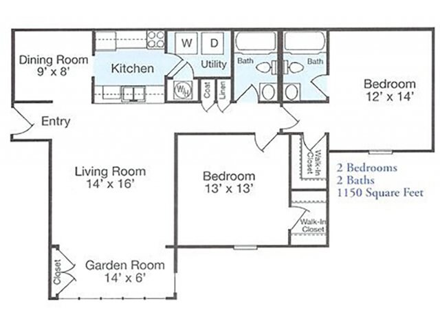 2 Beds, 2 Baths, 1150 sq ftAvailable NowLargest 2 BedroomThis is the largest 2 Bedroom at this PropertyModel Gallery