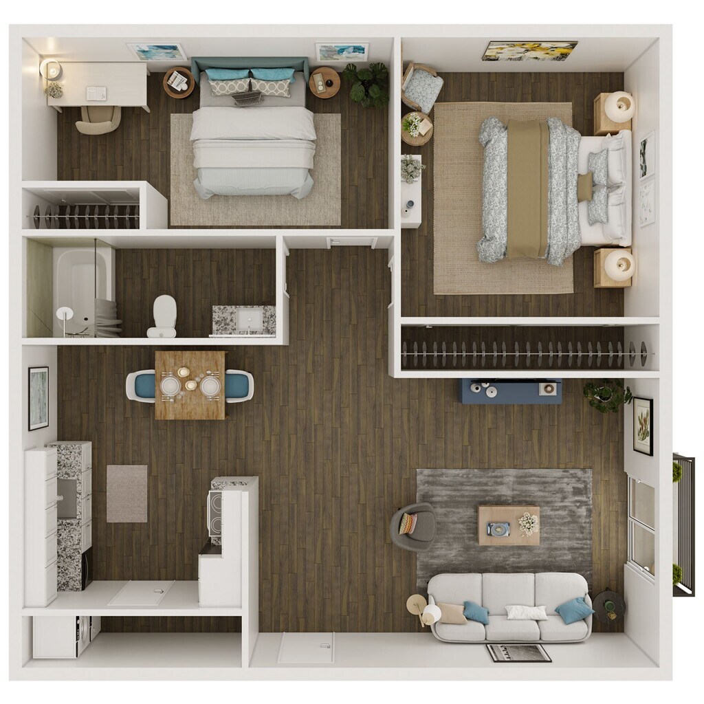 2 Beds, 1 Bath, 790 sq ftAvailable NowModel Gallery