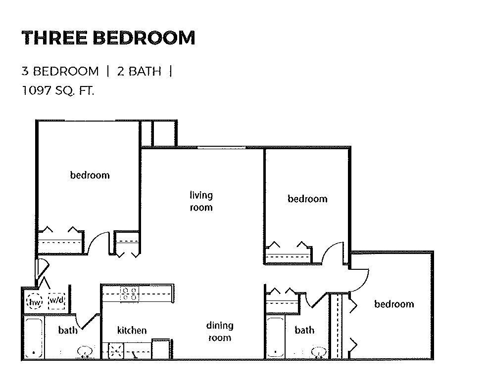 Apartment Model: 3 Bedroom Tax Credit$1,6403 Bedroom, 2 Bath, 1097 sq ftUnavailable3 Bedroom Tax Credit - Floorplan 1 3 Bedroom Market