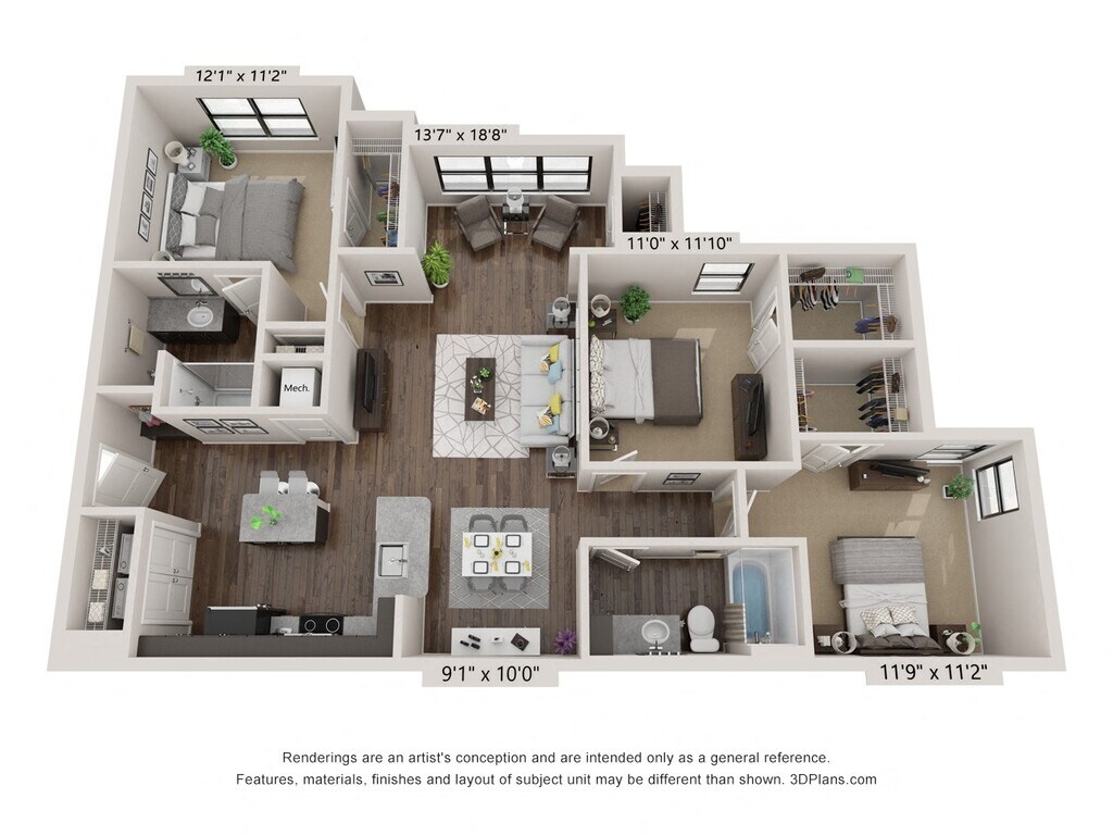 1 Bed, 1 Bath, 820 sq ftAvailable NowLargest 1 BedroomThis is the largest 1 Bedroom at this PropertyModel Gallery