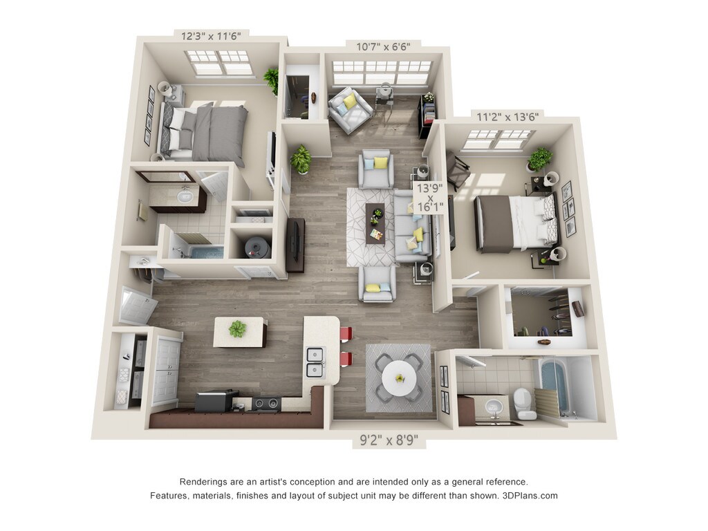 Apartment Model: B1From $1,5992 Bedroom, 2 Bath, 1029 sq ftAvailable Now![]()