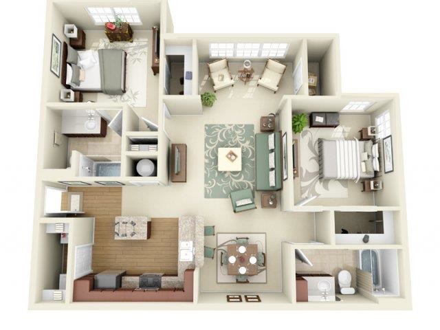 2 Beds, 2 Baths, 1131 sq ftAvailable NowLargest 2 BedroomThis is the largest 2 Bedroom at this PropertyModel Gallery