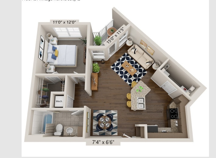 Apartment Model: A1From $1,4361 Bedroom, 1 Bath, 664 sq ftAvailable Now![]()