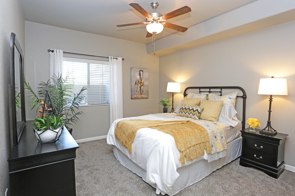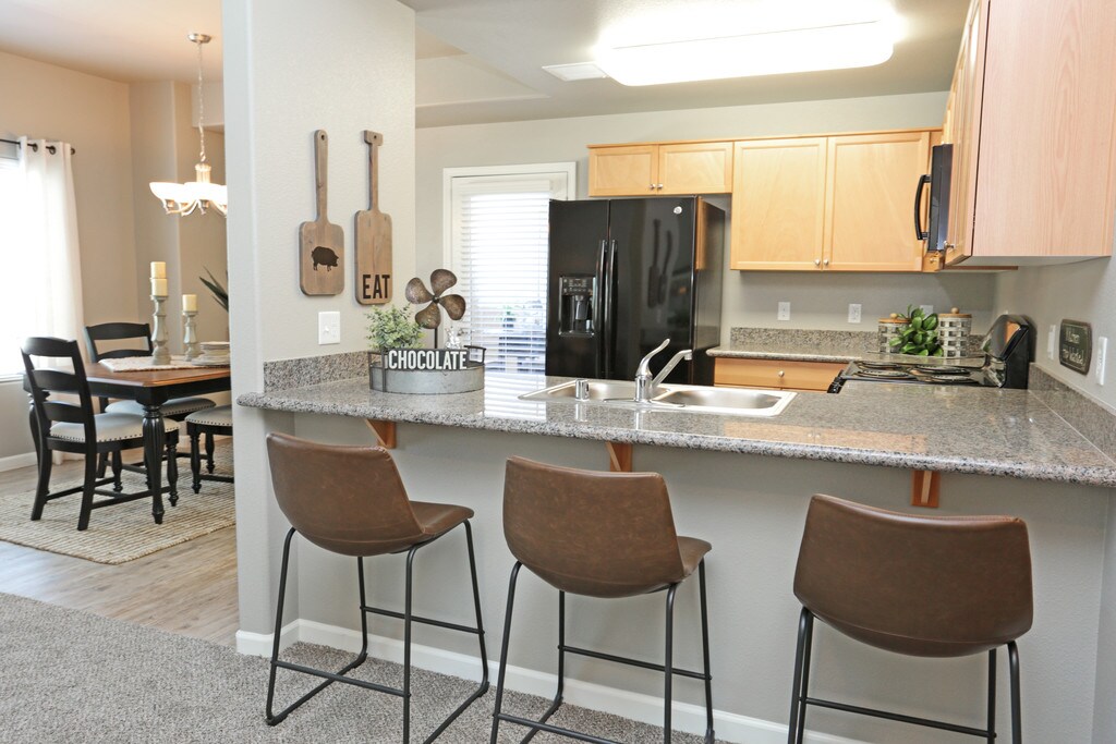 Vintage Park is a beautiful gated community in northeast Fresno, California. We are located in the Clovis School District and just steps to Target, Starbucks, and a variety of great shopping and restaurants. Our stylish apartment homes offer spacious one, two, and three bedroom floor plans. The kitchens have granite counter tops, sleek black appliances including a side by side refrigerator with water and ice dispenser, and a breakfast bar. Walk-in closets, 9-foot ceilings, two-tone interior paint, ceiling fans, and a full-size washer and dryer will complete the comfort and enjoyment you’ll find in your new home. Plus the private patio or balcony off the dining area will be a great outdoor space for some relaxation after a long day. The community amenities at Vintage Park are sure to impress like our attractive pools and outdoor event area, state-of-the-art fitness center, and our clubhouse and conference room with wifi. You’ll never want to leave home! Style. Comfort. Convenience. Find it all at Vintage Park, a premium community in Fresno! VintageParkFresno. com The prices quoted are reduced from the month to month market rate with a 12 month agreement.