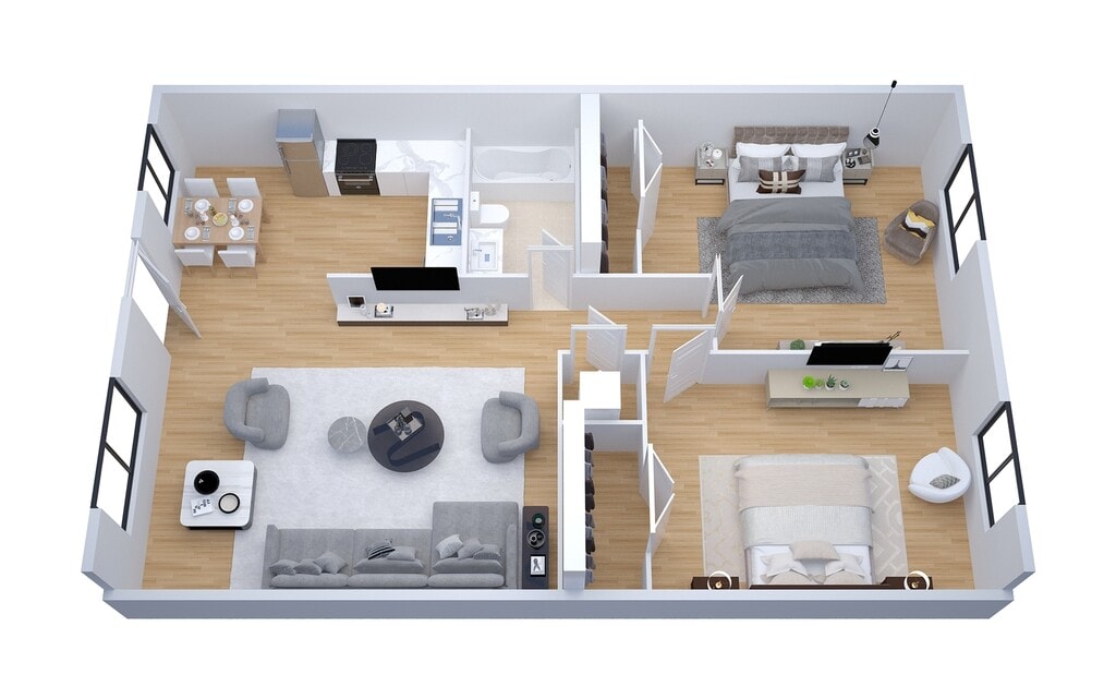 2 Beds, 1 Bath, 850 sq ftModel Gallery