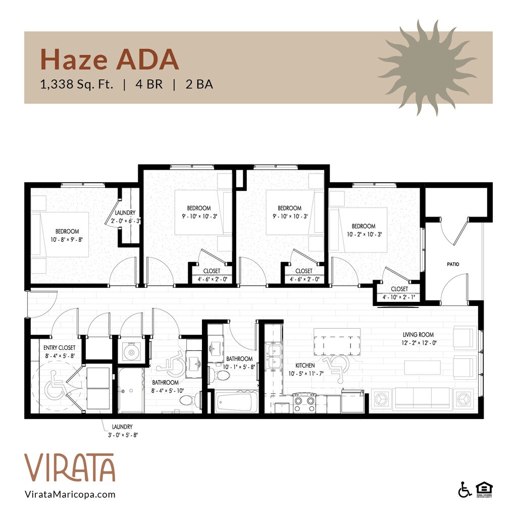 Haze ADA - Floorplan 1 Apartment Unit: B100Apartment Model: Haze ADA$1,9534 Bedroom, 2 Bath, 1338 sq ftAvailable June 16, 2026Haze