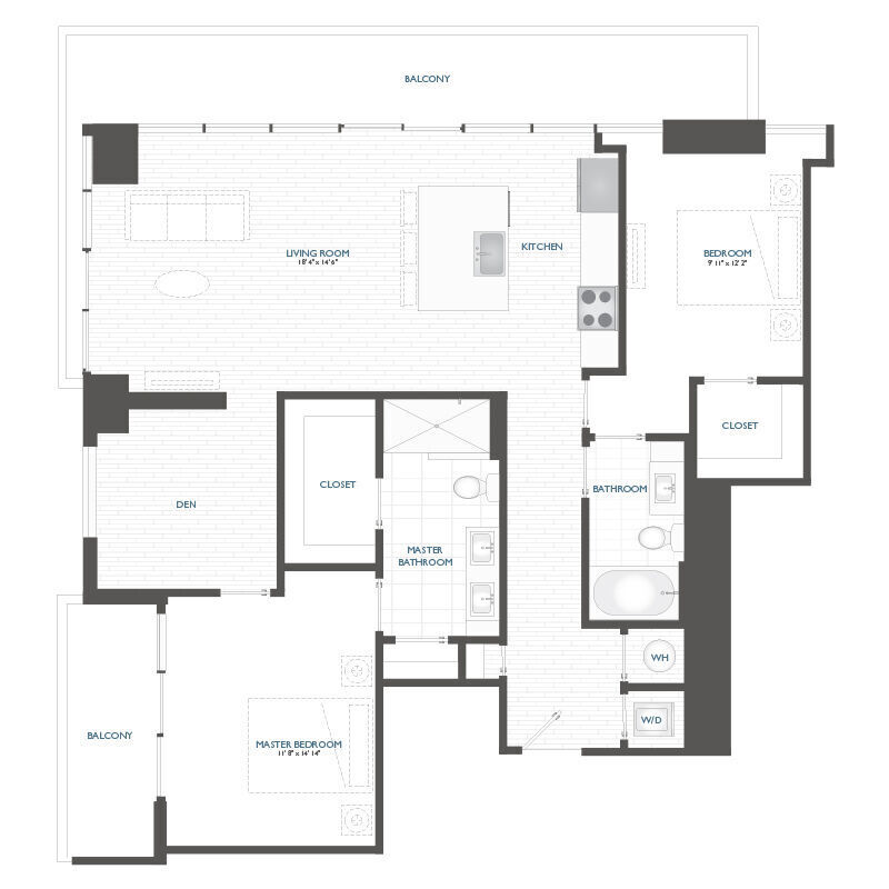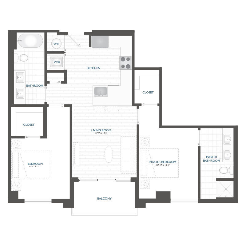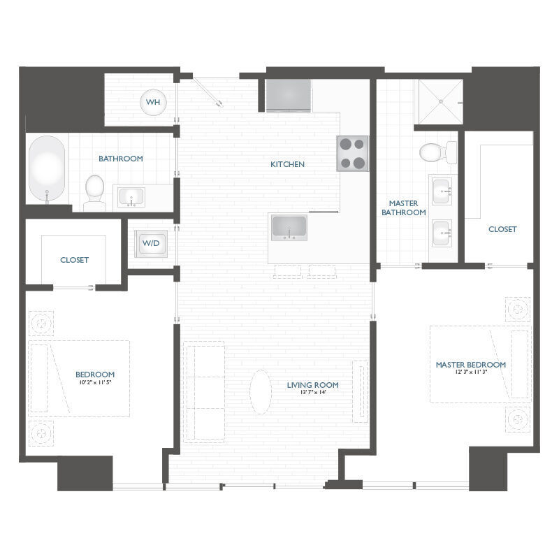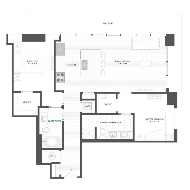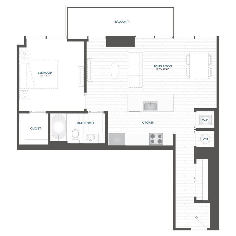 Apartment Model: A2.1From $2,1251 Bedroom, 1 Bath, 672 sq ftAvailable Now![]()