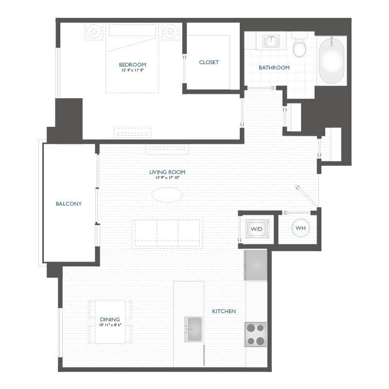 1 Bed, 1 Bath, 672 sq ftAvailable NowModel Gallery