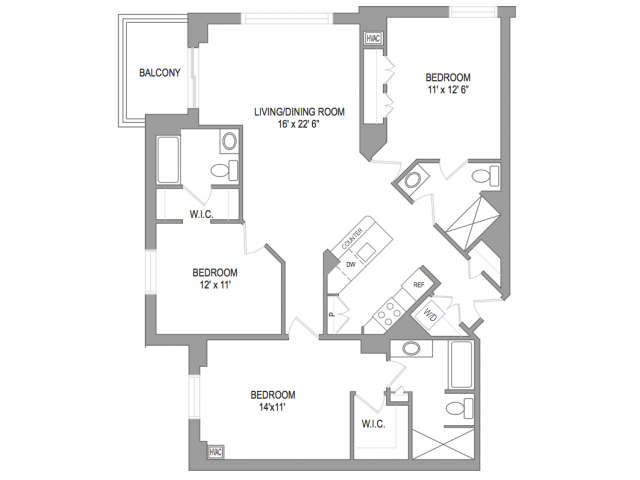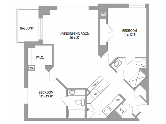 Apartment Model: 2x2From $2,9952 Bedroom, 2 Bath, 950-1065 sq ftUnavailableFloorplansPhotos![]()