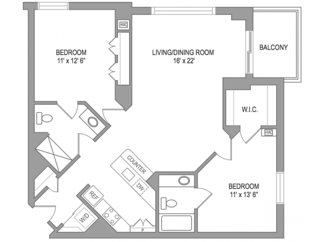 Apartment Model: 2x2From $2,9952 Bedroom, 2 Bath, 950-1065 sq ftAvailable February 17, 2026FloorplansPhotos![]()