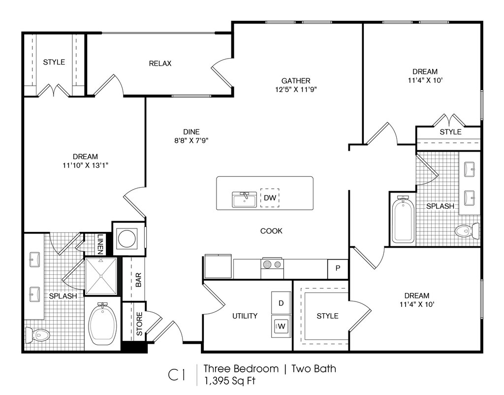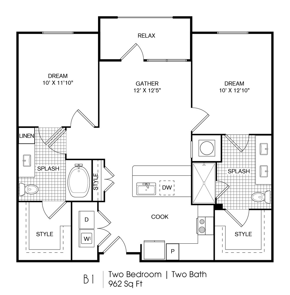 Apartment Model: 1X1From $1,3051 Bedroom, 1 Bath, 772 sq ftAvailable Now![]()