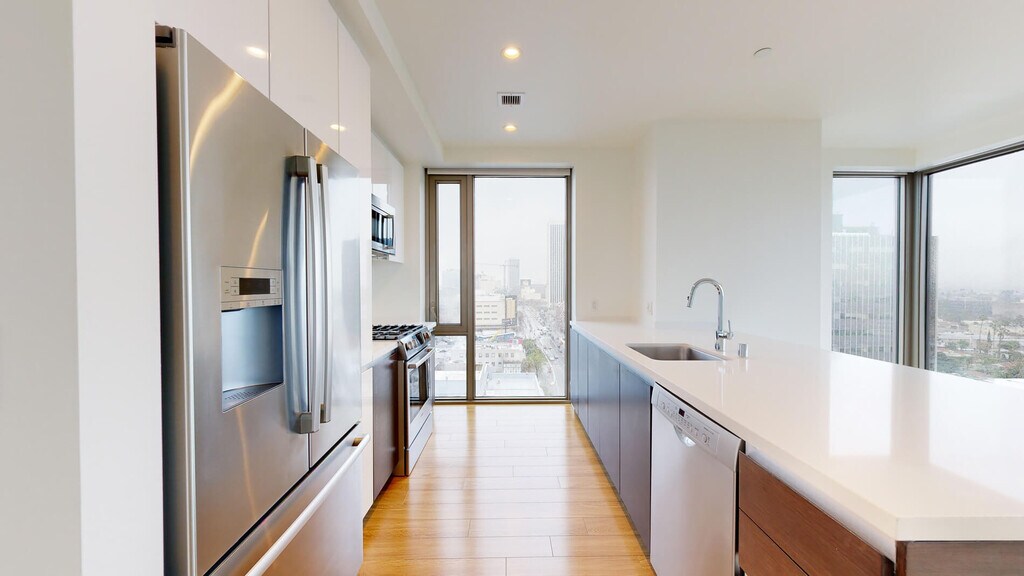 Embrace an unrivaled views and exquisite design at Vision on Wilshire. These luxury LA apartments feature gourmet kitchens complete with quartz countertops, premium Bosch appliances, and premium cabinetry with soft close doors. Enjoy spacious master suites, lavish bathrooms with Hansgrobe fixtures, designer accessories, hardwood flooring, and remote controlled window shades. Residents are invited to enjoy the convenient on-site amenities including the rooftop pool, fitness center, and work from home spaces. Enjoy premier shopping, chic eateries, and entertainment venues just steps from your door at The Grove. Schedule a tour today and experience luxury apartment living at VISION.