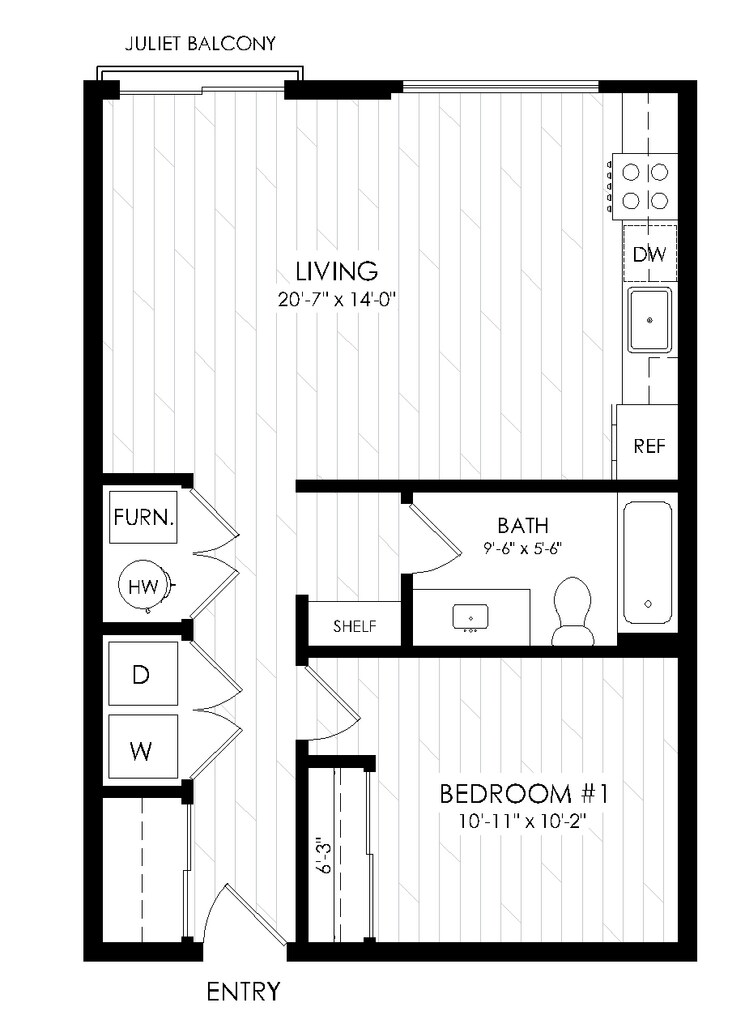 1 Bed, 1 Bath, 625 sq ftModel Gallery