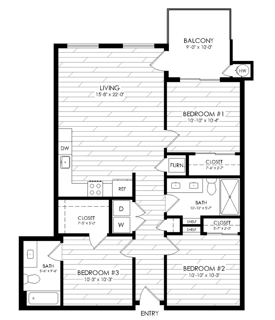 2 Bed 2 Bath - Floorplan 7 3 Bedrooms