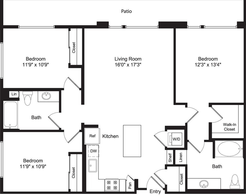 One Bed A4 with Patio - Floorplan 1 Apartment Unit: 3-3212Apartment Model: One Bed A4 with Patio$2,9601 Bedroom, 1 Bath, 740 sq ftAvailable January 13, 2026One Bed A1 with Master Balcony