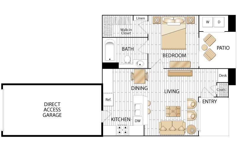 Apartment Model: Plan DFrom $2,9901 Bedroom, 1 Bath, 767 sq ftAvailable Now![]()