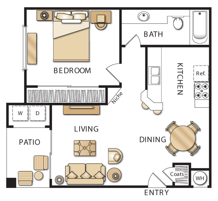 1 Bed, 1 Bath, 767 sq ftAvailable NowLargest 1 BedroomThis is the largest 1 Bedroom at this PropertyModel Gallery