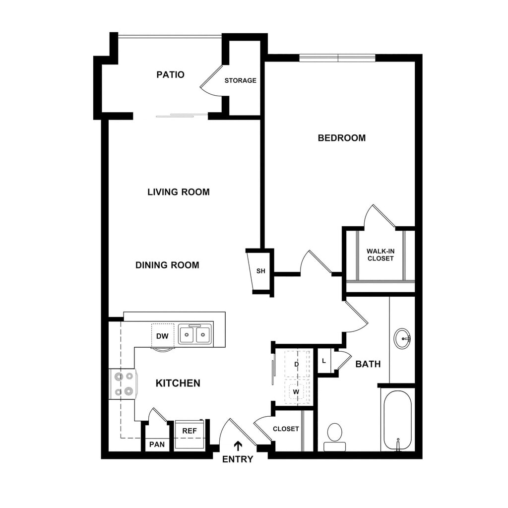 Income Restricted One Bedroom 60% - Floorplan 2 ![]()